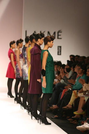 When the air is moist and dripping with prophecies of economic doom can fashion be far behind? Like any true creative medium, fashion too finds itself wrapped around the dainty shoulders of history. Hence, Autumn Winter ’09 brings out the eclectic characters of the season. And how. Somber Blacks, Whites and Greys with quilting and all original digital prints, trapeze shape, habutai, Raw silk dresses and jackets make a special appearance and personify the mighty Recession that wants to eat us all. The intricate geometrical patterns and prints that create momentary illusions are not just mere chic elements but are also allusions to the confusion of the harrowed investor. The latter part of the collection gets more buoyant with intermittent splashes of happy colours that bring with it a promise of better times. Solid colours with a lot of draped pleating communicate brighter, newer beginnings. The crowning glory of the collection is the evening wear. Digitally printed silk dresses that cry freedom and bring about a warmth in our hearts that can only be interpreted as the pure joy of life